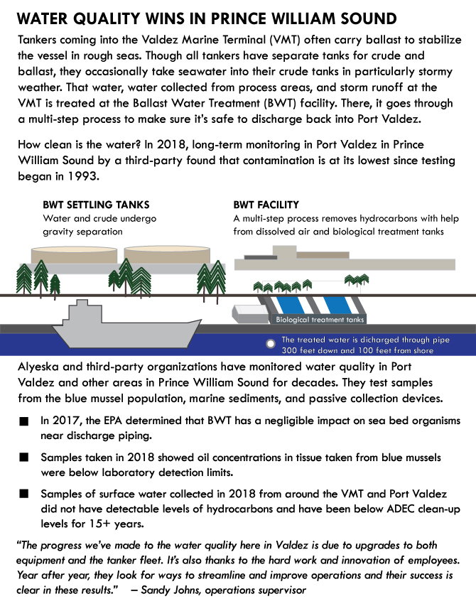 We take pride in our comprehensive water treatment process, which treats approximately 9 million barrels of water annually. Our plant processes a combination of storm ballast water from tankers, industrial wastewater generated from our operational activities, and storm runoff collected from various process areas throughout the terminal. Through a series of rigorous treatments, including settling tanks, Dissolved Air Flotation Units, air strippers, thermal oxidizers, and biological treatment tanks, we ensure that only safe and clean water is discharged into Port Valdez.